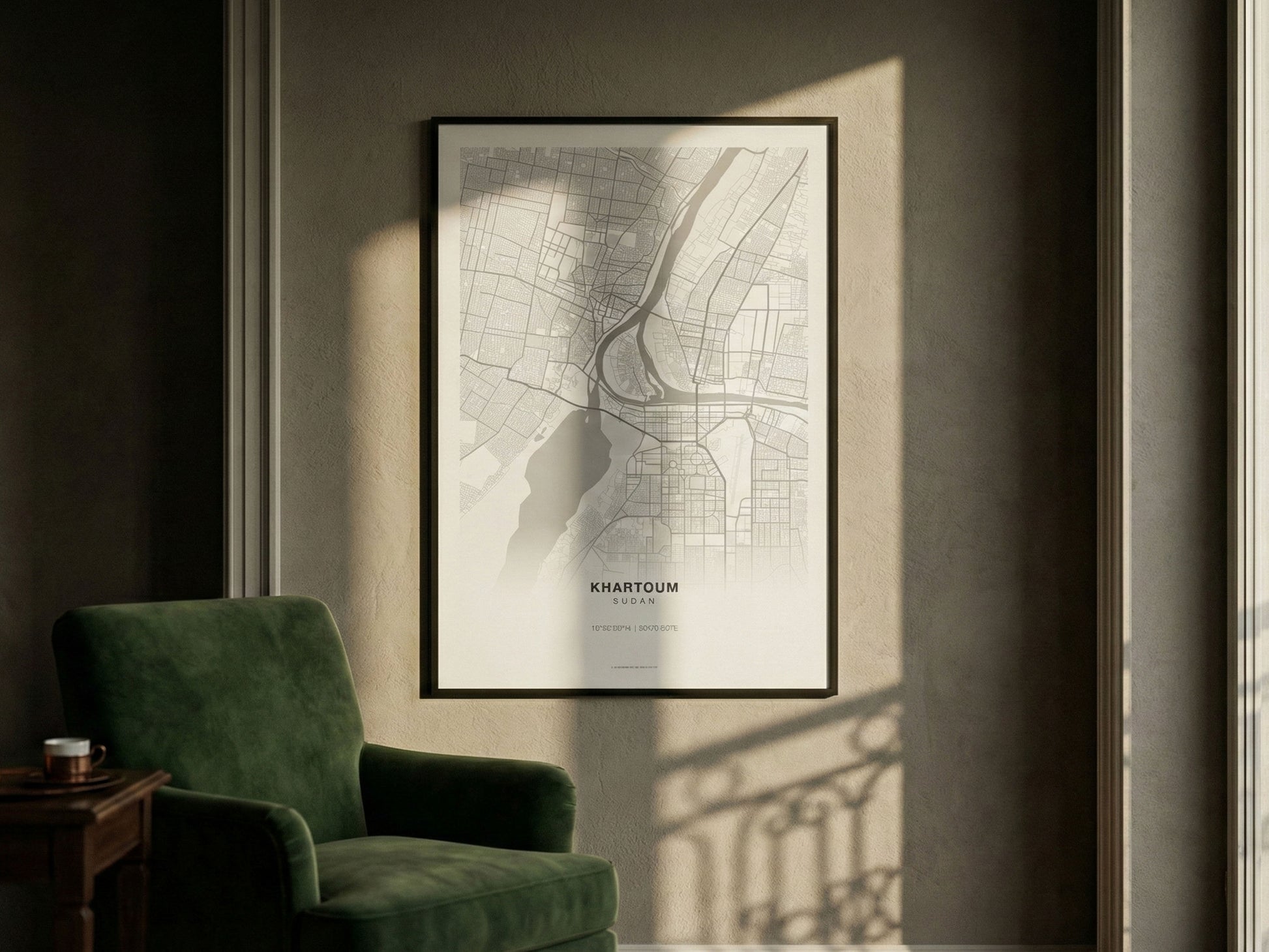 Hartum’un modern ve özenle tasarlanmış bir haritası — temiz çizgiler, denge ve zarafeti önemseyen iç mekânlar için üretildi.